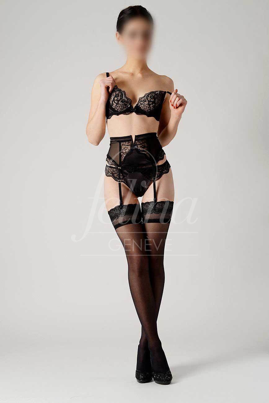 Brune au regard tendre, courbes harmonieuses (90x60x90) et poitrine naturelle, elle vous accueille à Genève avec douceur et discrétion.